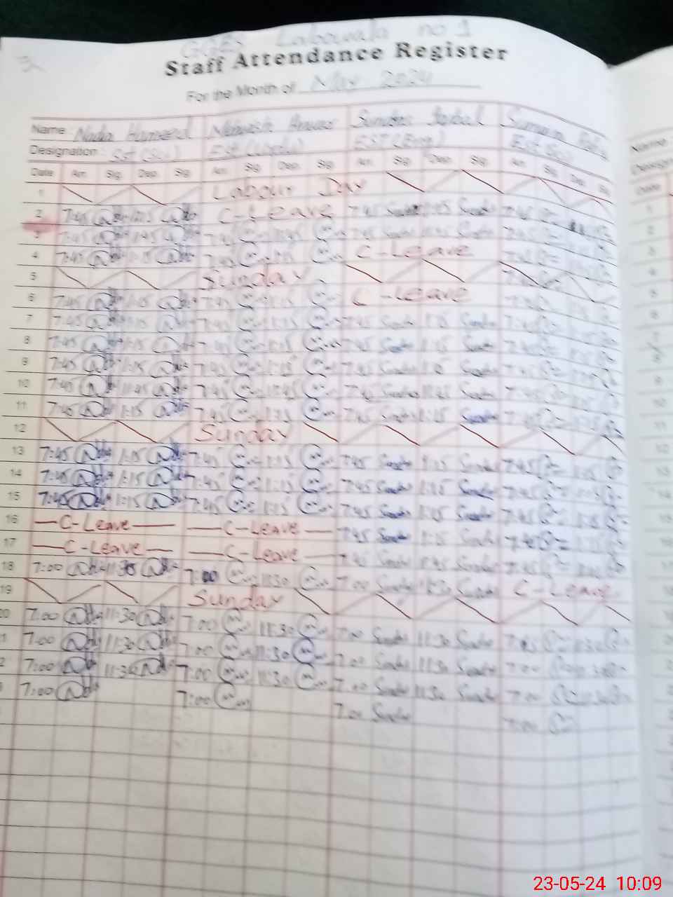 | CNIC | Full Name | Designation | R/C | Absence During Last Calender Month |