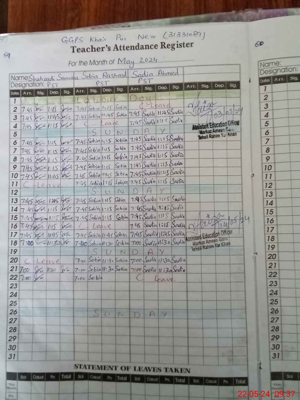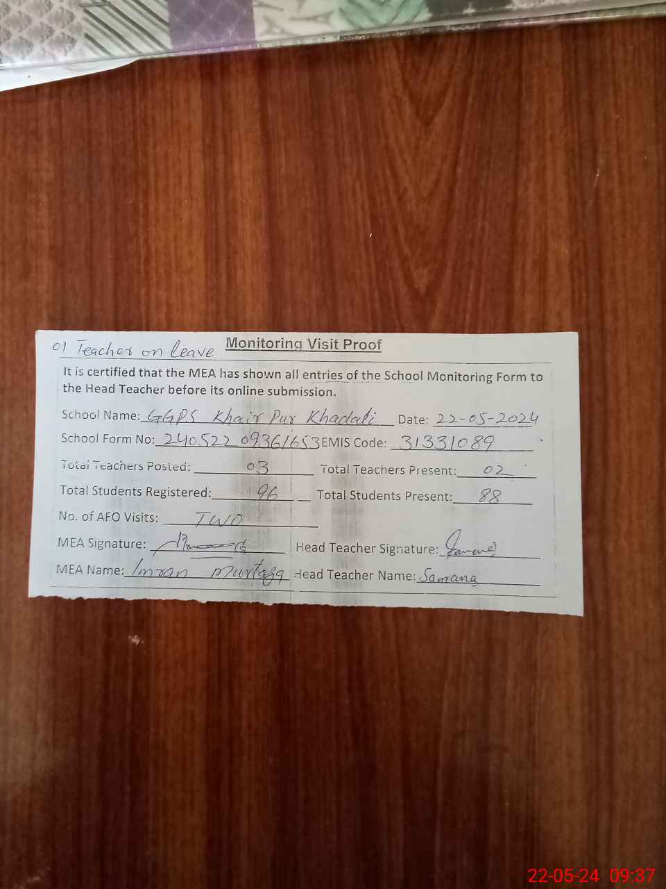 | EMIS Code: 31331089 | Name of School: GGPS KHAIR PUR KHADALI | |||