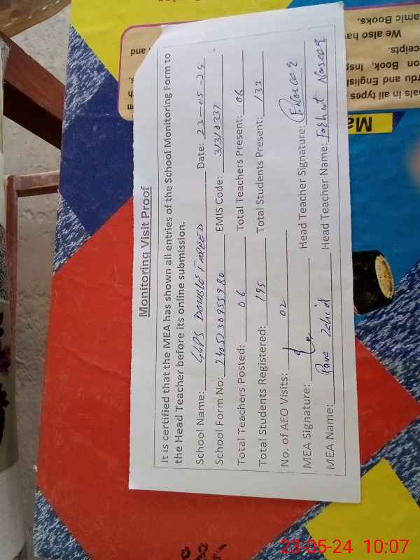| EMIS Code: 31310337 | Name of School: GGPS DOBLE FAREED | |||