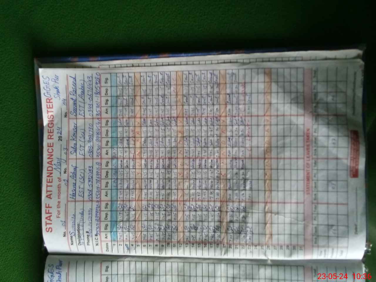 | CNIC | Full Name | Designation | R/C | Absence During Last Calender Month |