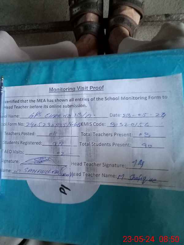 | EMIS Code: 31320156 | Name of School: GPS CHAK NO. 13/A | |||