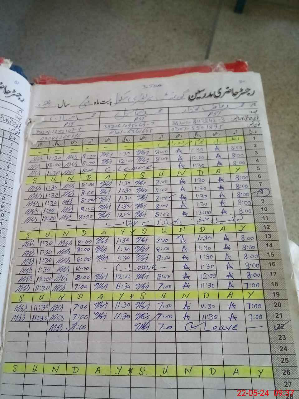 | CNIC | Full Name | Designation | R/C | Absence During Last Calender Month |
