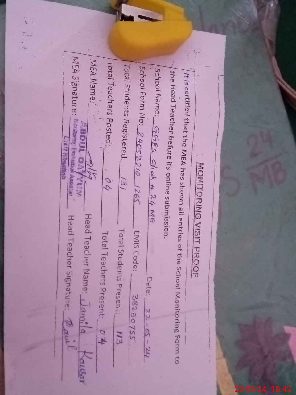 | EMIS Code: 38230755 | Name of School: GGPS CHAK NO 24 MB | |||