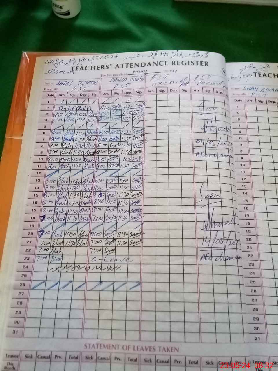 | 31**** | Sa**** Sa**** | PST | Regular | 0 | 0 | 0 | 0 | 0 | 0 | 0 | 0 | 0 | Casual |