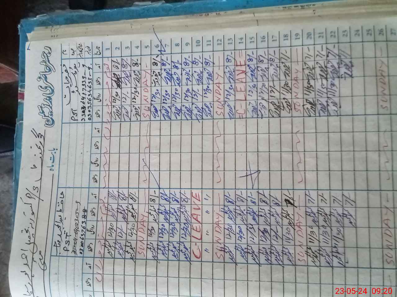 | CNIC | Full Name | Designation | R/C | Absence During Last Calender Month |