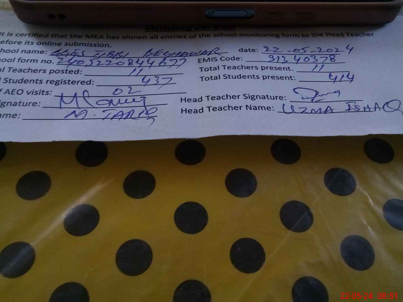 | Name: UZ**** IS**** Designation: (School Headmaster's/Headmistress's) S.S.T.(general Phone/Cell Number: 03**** |