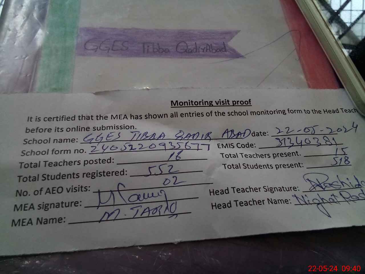 | EMIS Code: 31340381 | Name of School: GGES TIBBA QADIR ABAD | |||