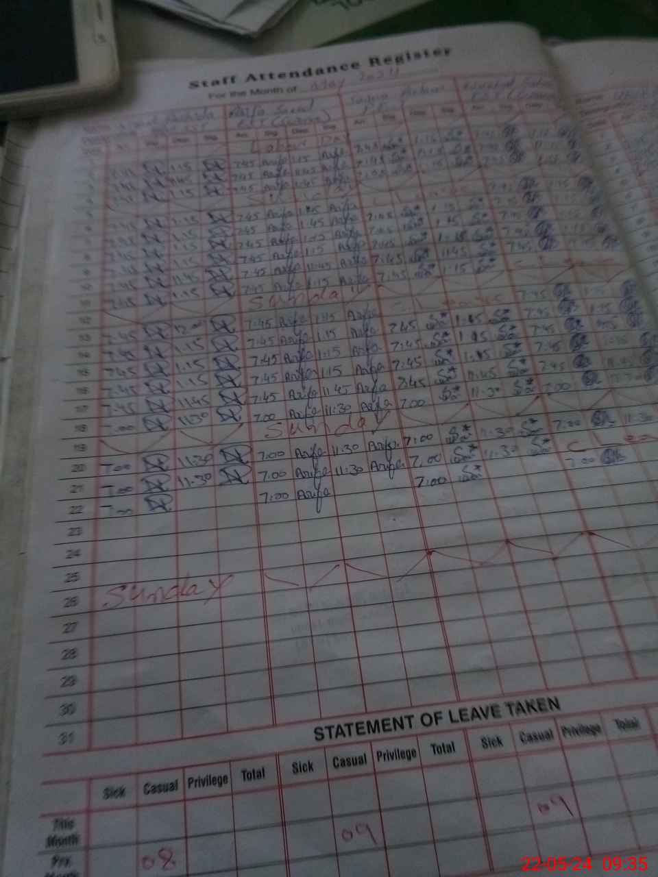 | 31**** | Ya**** Ko**** | PST | Regular | 2 | 4 | 0 | 0 | 0 | 0 | 0 | 0 | 2 | Exam Duty |