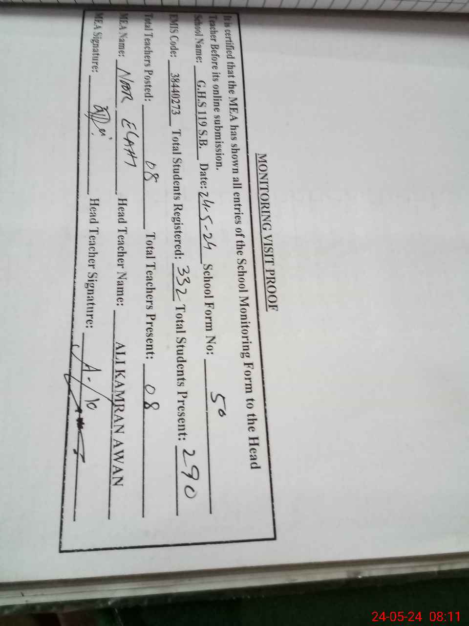 | EMIS Code: 38440273 | Name of School: GHS CHAK NO.119 SB | |||