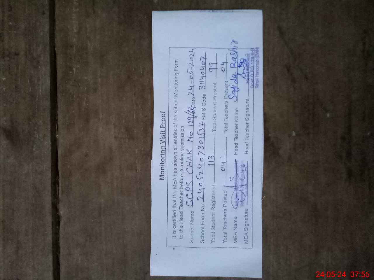 | EMIS Code: 31140407 | Name of School: GGPS CHAK NO 129/6-R | |||