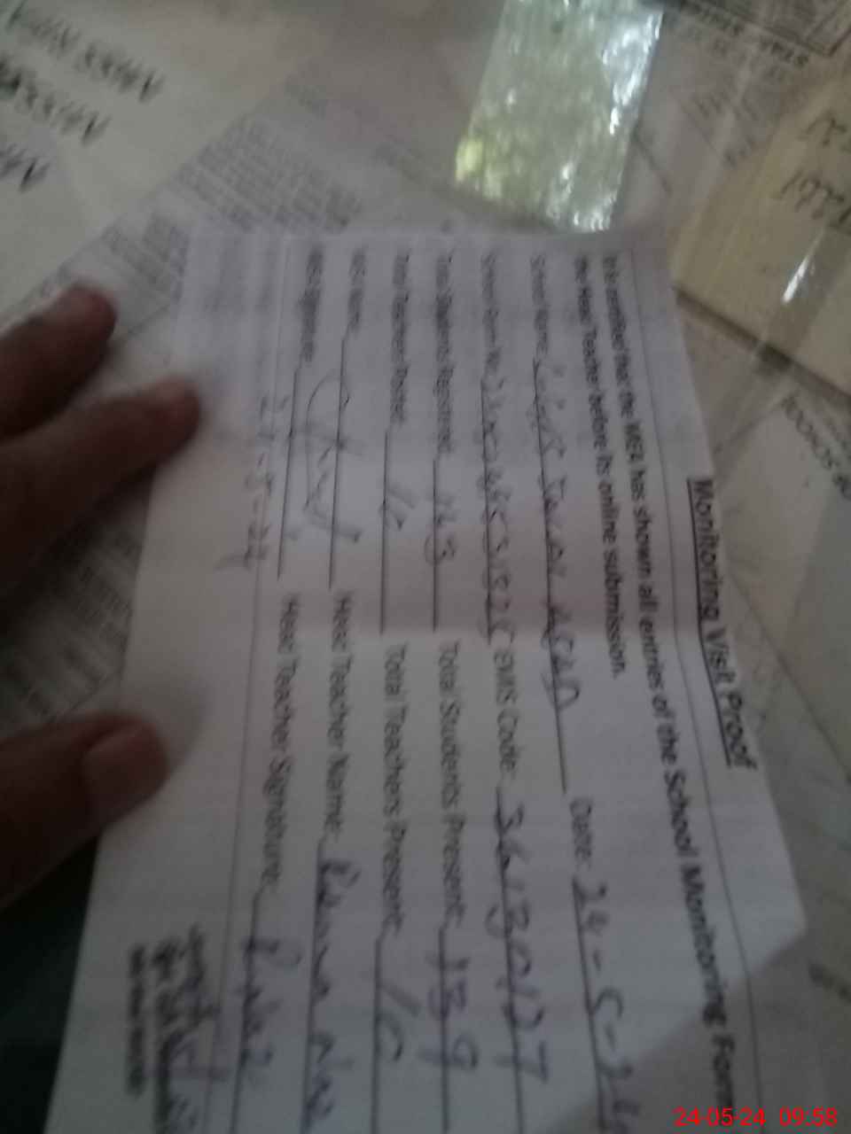 | Attendance Register | Head Teacher | MEA with School | Visit Proof |