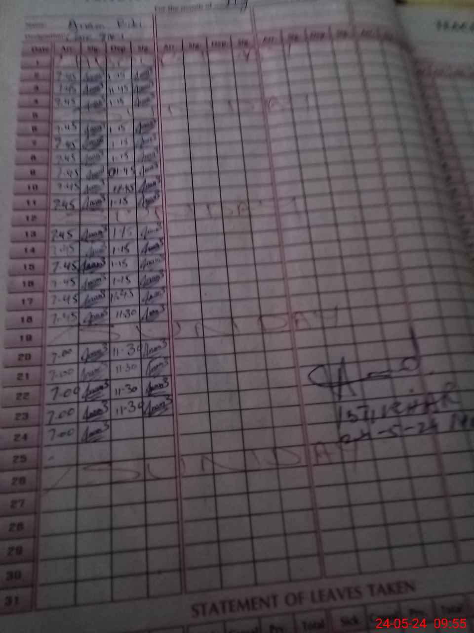 | CNIC | Full Name | Designation | R/C | Absence During Last Calender Month |