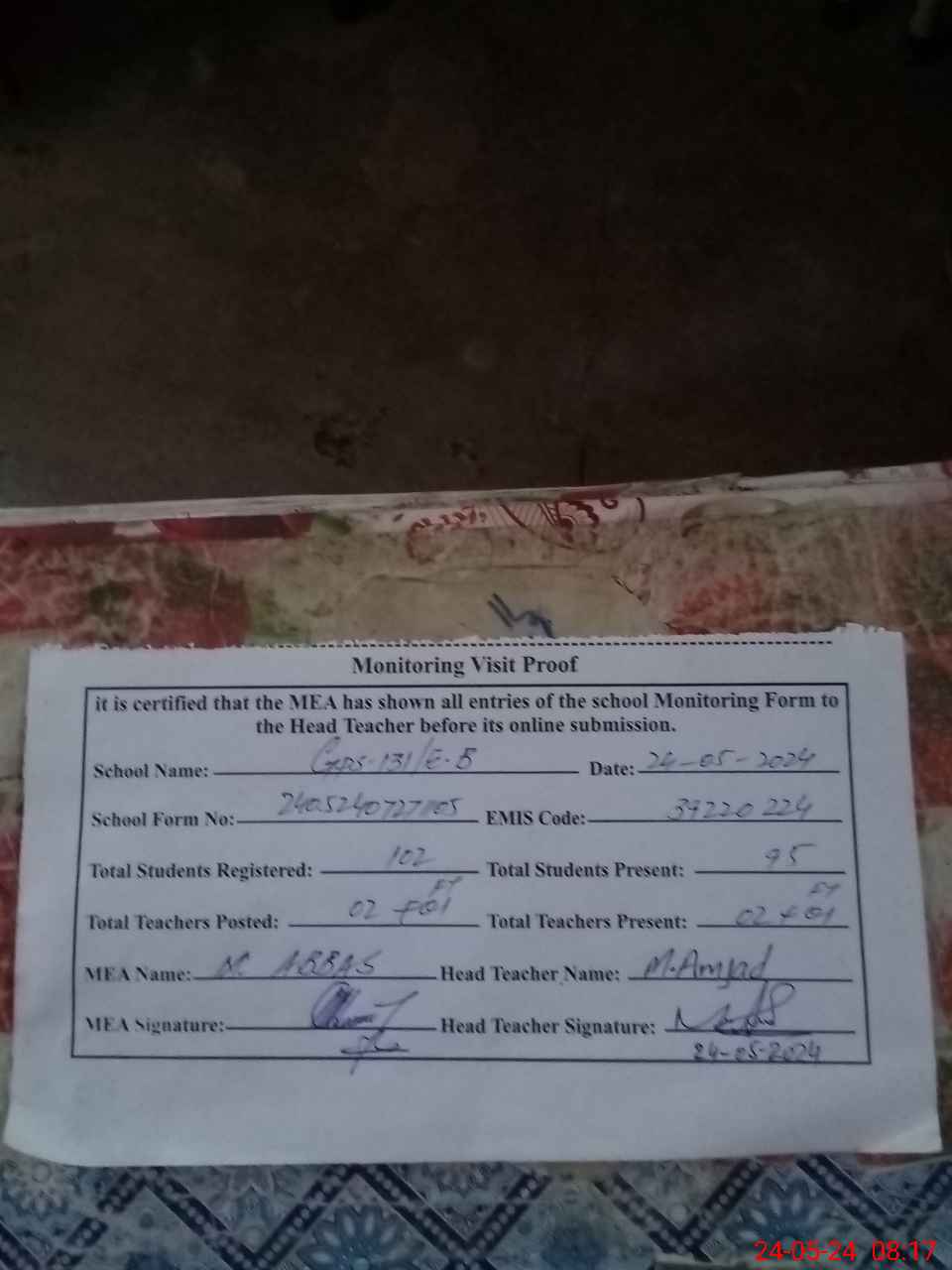 | EMIS Code: 39220224 | Name of School: GPS 131 EB P.O SAME | |||