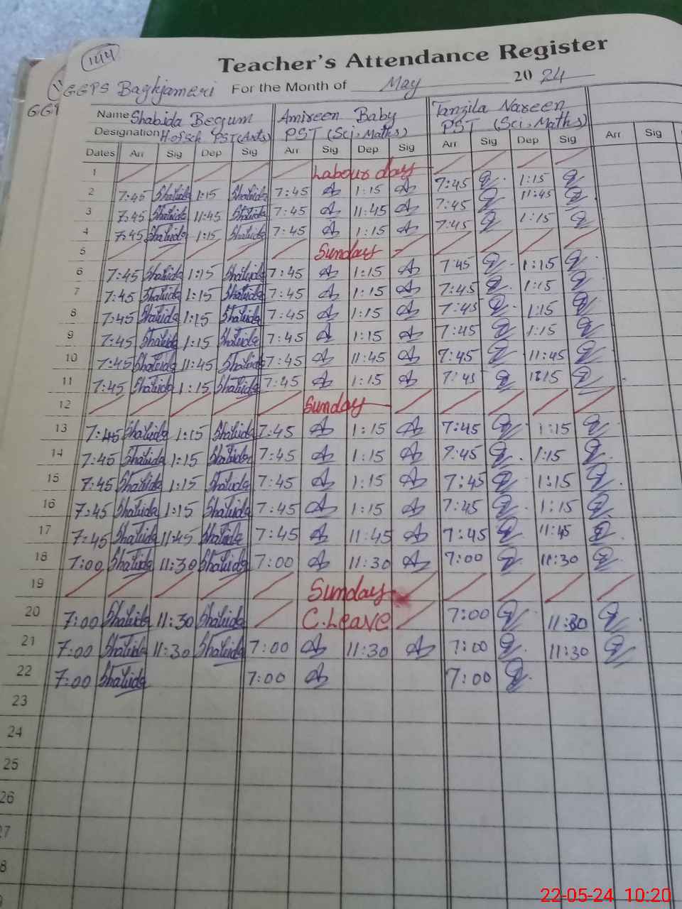 | CNIC | Full Name | Designation | R/C | Absence During Last Calender Month |