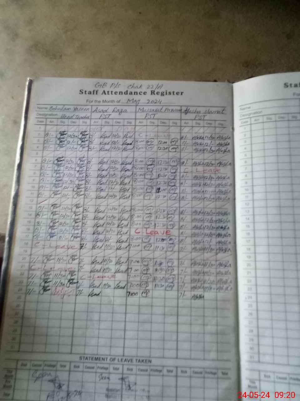 | Leave | Duty | Absent | Maternity | Medical | Ex- Pak |
