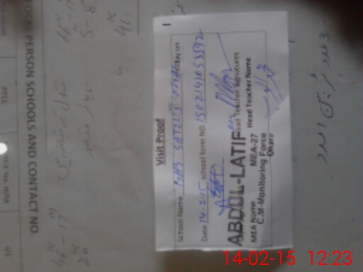 | Attendance Register | Head Teacher | MEA with School | Visit Proof |