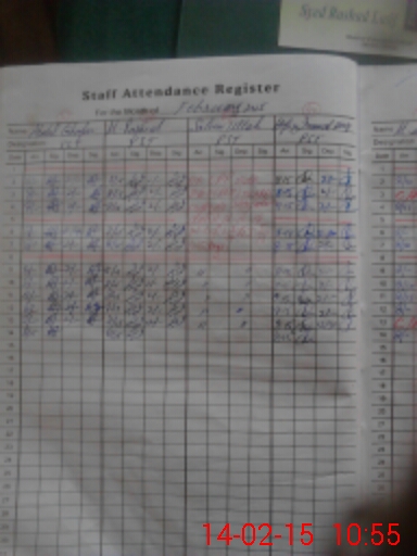 | 36**** | TA**** AH**** | CHOKIDAR | Contract | 2 | 0 | 0 | 0 | 0 | 0 | 0 | 0 | 2 | Casual |