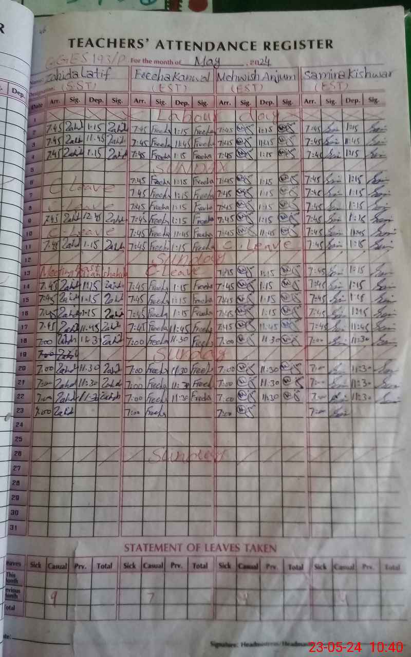 | CNIC | Full Name | Designation | R/C | Absence During Last Calender Month |