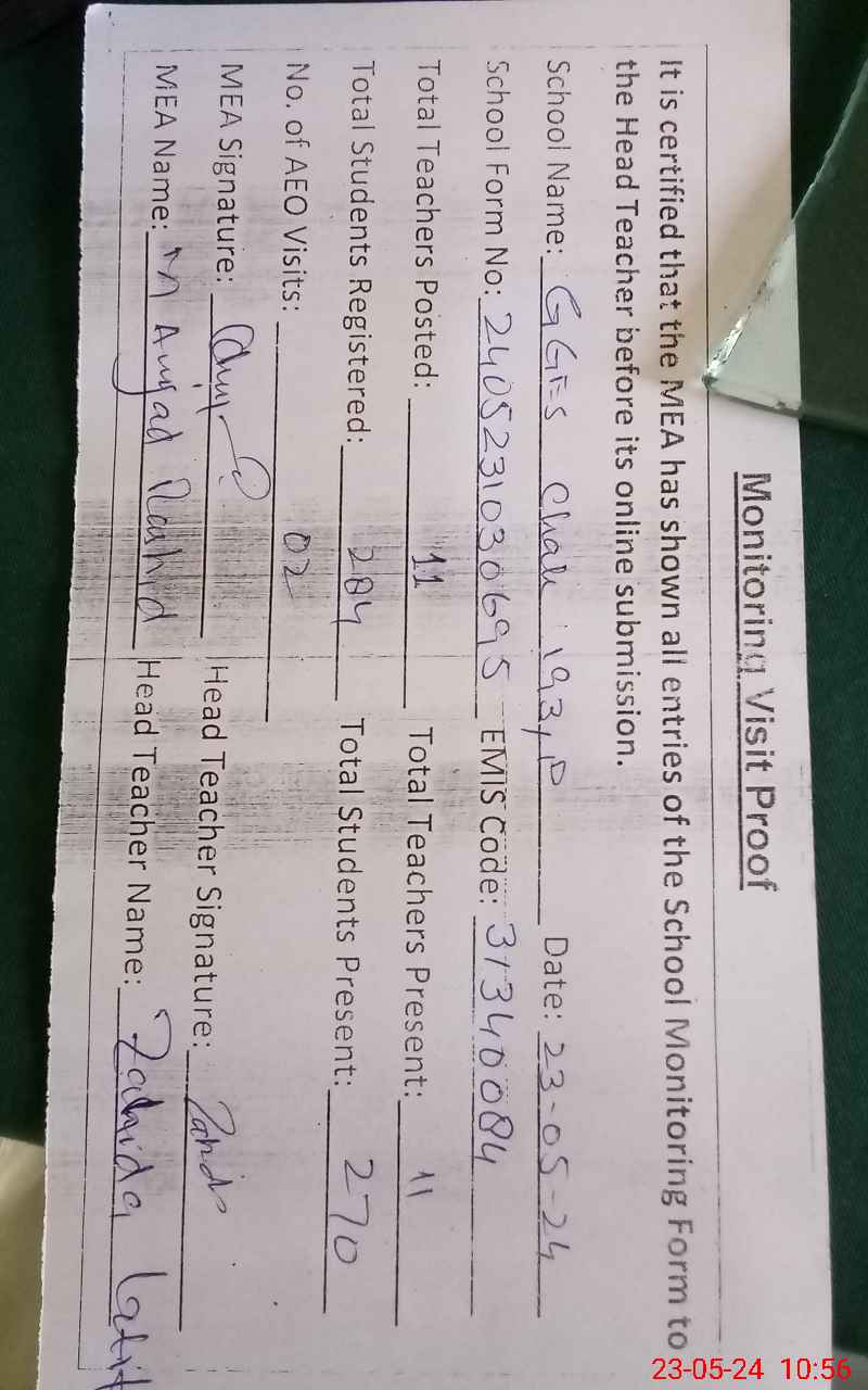 | Attendance Register | Head Teacher | MEA with School | Visit Proof |