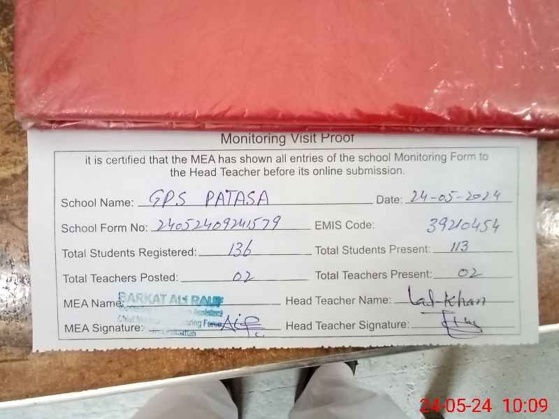 | EMIS Code: 39210454 | Name of School: GPS PATASA P/O DHUPAI | |||