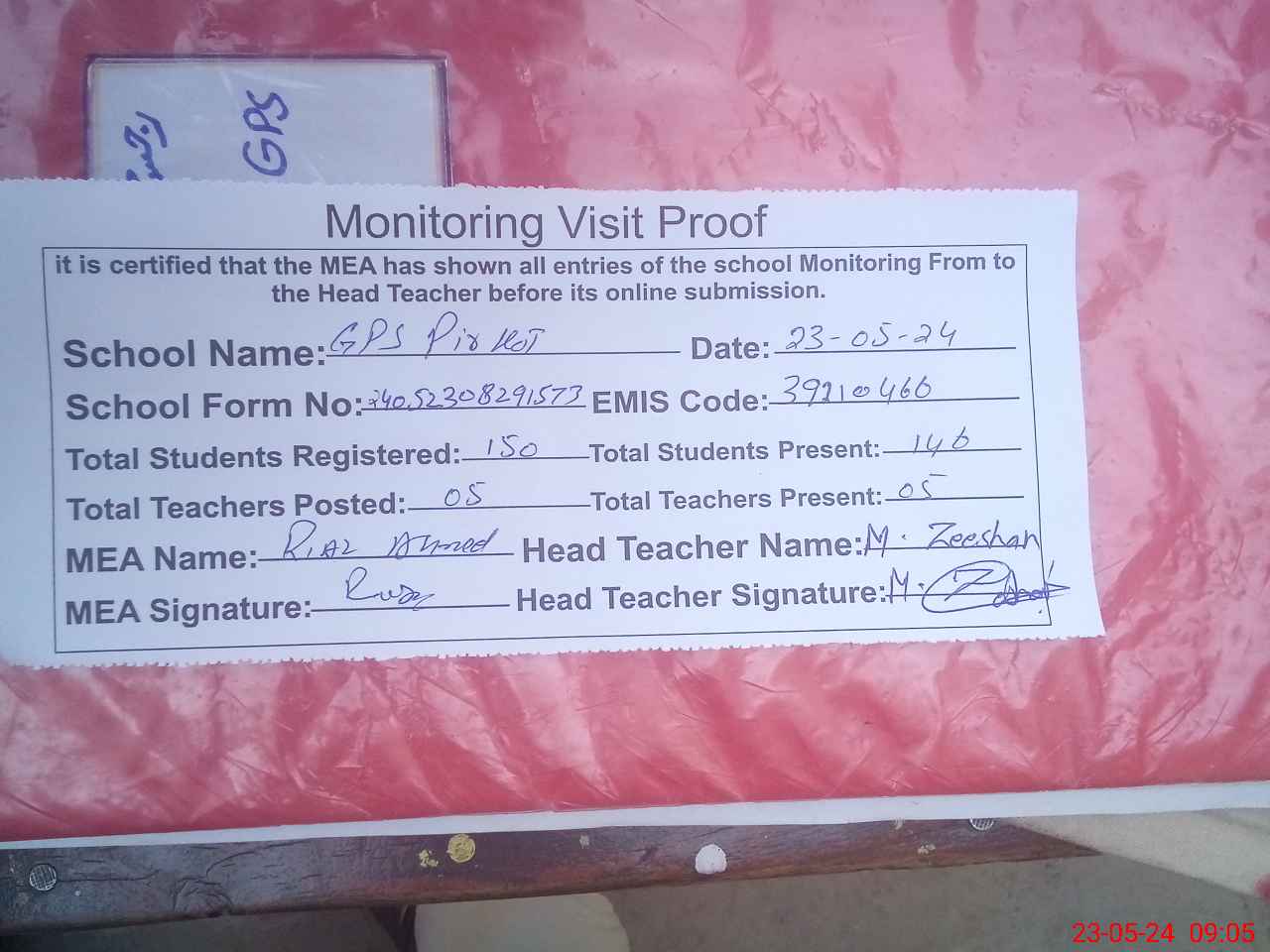 | EMIS Code: 39210466 | Name of School: GPS PIR KOT PAKPATTAN | |||