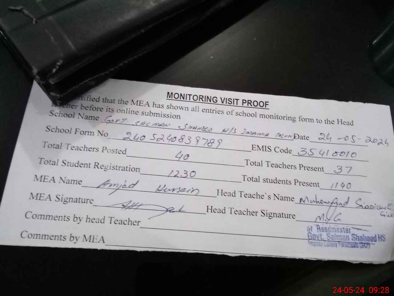 | Name: MSI**** GI**** Designation: (School Headmaster's/Headmistress's) S H M Phone/Cell Number: 03**** |