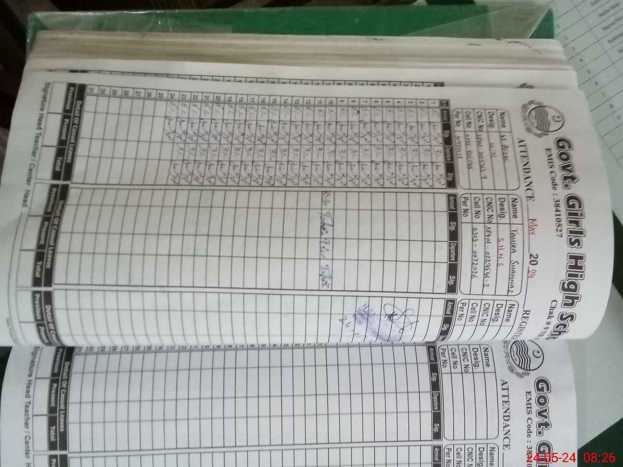 | Name: IR**** SA**** Designation: (School Headmaster's/Headmistress's) HM Phone/Cell Number: 03**** |