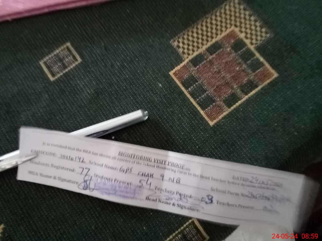 | Attendance Register | Head Teacher | MEA with School | Visit Proof |