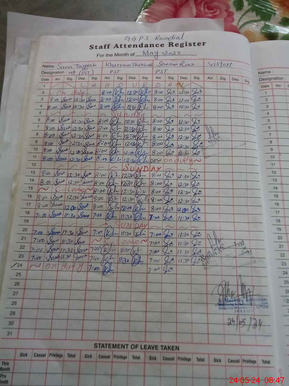 | Leave | Duty | Absent | Maternity | Medical | Ex- Pak |