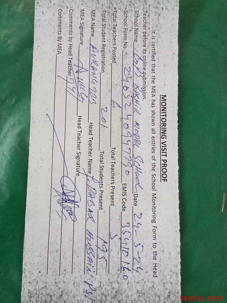 | EMIS Code: 35410160 | Name of School: GPS BASHIR MODEL RANA TOWN | |||