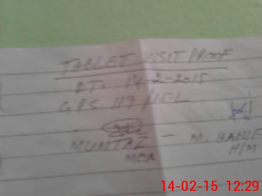 | School Visited by School Health & Nutrition Supervisor (No. of Visits) | 1 | Name1: | Rukhsana Kousar | Name2: | |
