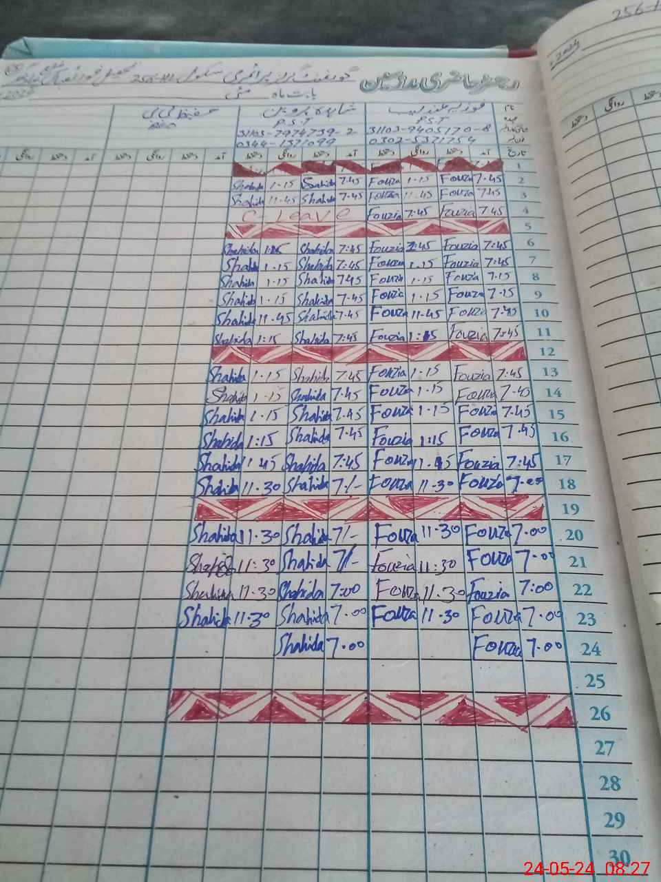 | Leave | Duty | Absent | Maternity | Medical | Ex- Pak |