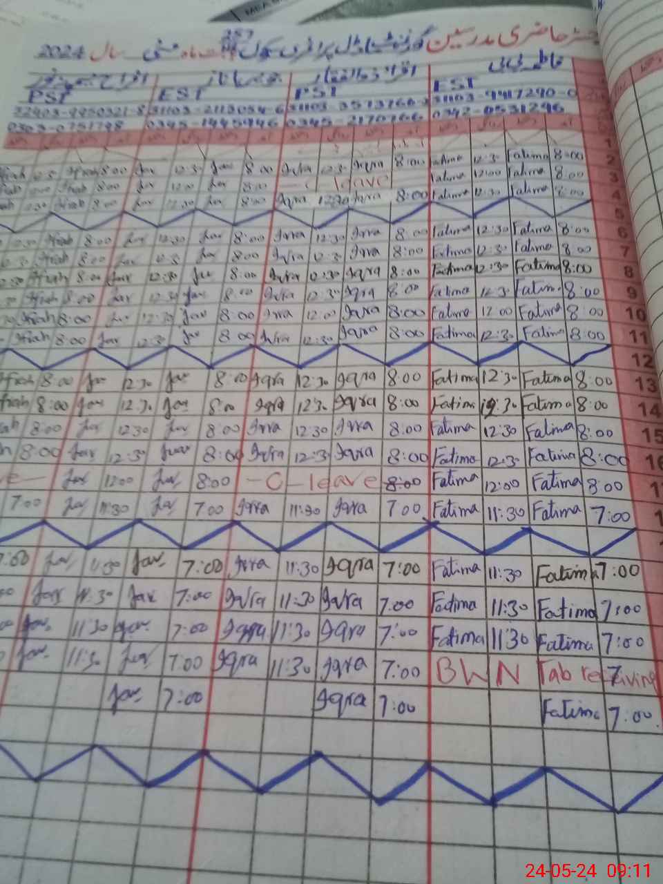 | Name: Fa**** BI**** Designation: (School Headmaster's/Headmistress's) EST Phone/Cell Number: 03**** |