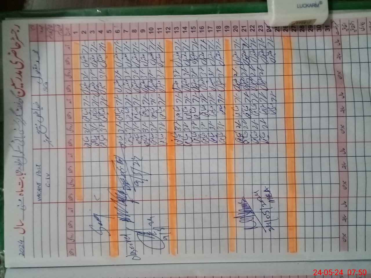 | CNIC | Full Name | Designation | R/C | Absence During Last Calender Month |