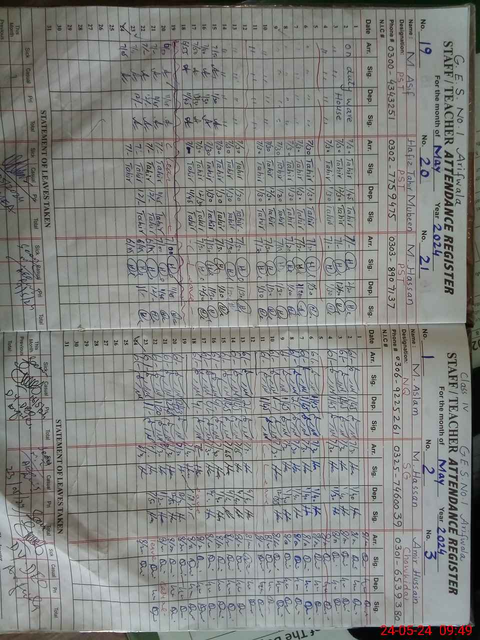 | Name: HA**** NA**** Designation: (School Headmaster's/Headmistress's) SST (GENERAL) Phone/Cell Number: 03**** |