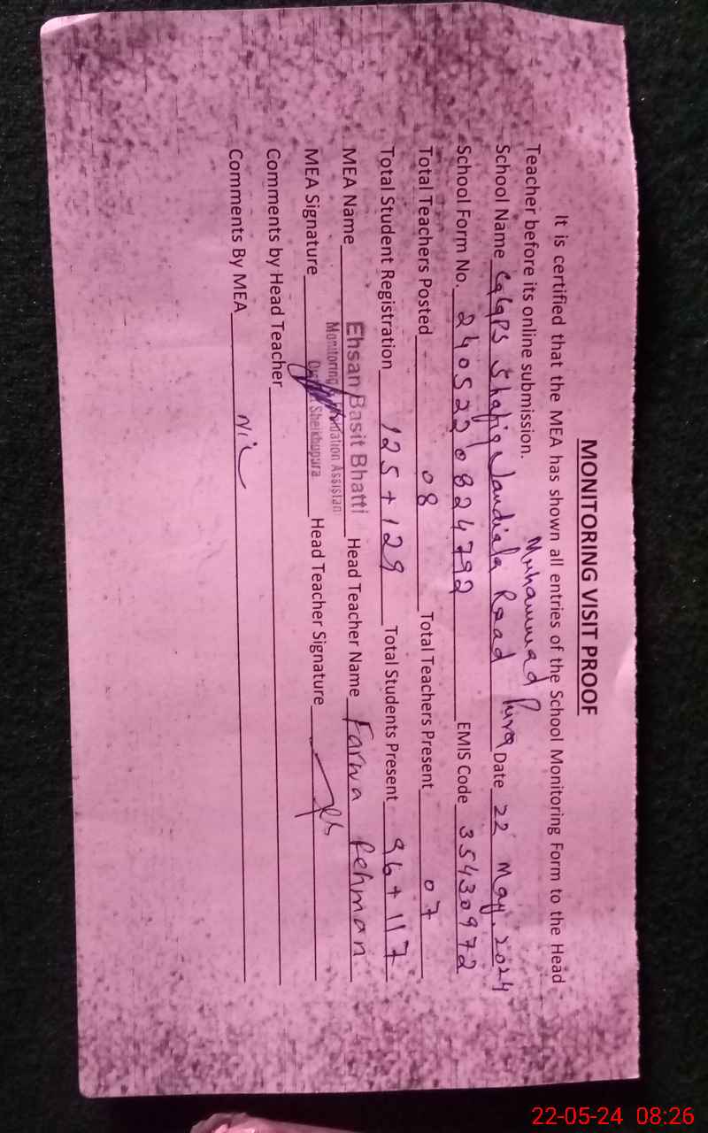 | EMIS Code: 35430972 | Name of School: GGPS SHAFIQ JANDIALA ROAD MUHAMMAD PURA | |||