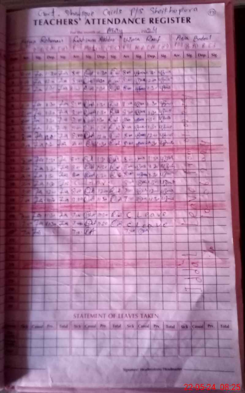 | CNIC | Full Name | Designation | R/C | Absence During Last Calender Month |
