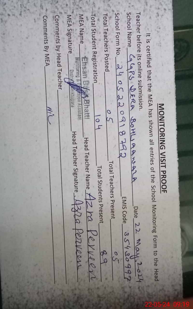 | EMIS Code: 35430997 | Name of School: GGPS DERA BOHLIAAWALA | |||