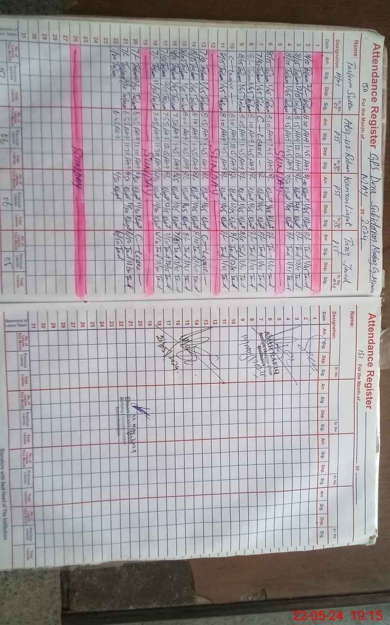 | CNIC | Full Name | Designation | R/C | Absence During Last Calender Month |