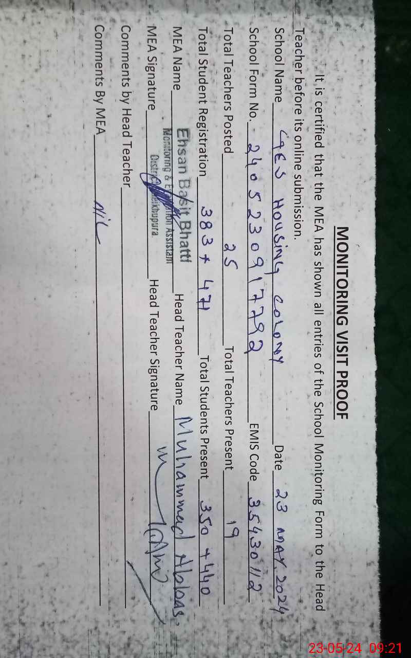 | EMIS Code: 35430112 | Name of School: GES HOUSING COLONY | |||