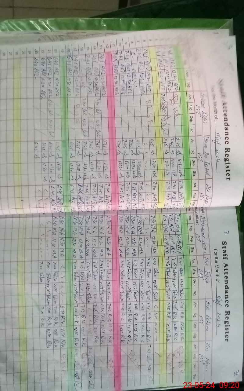 | 35**** | Sa**** Il**** | 1 | 1 | 0 | 0 | 0 | 0 | 0 | 0 | 0 | 0 | 0 | Exam Duty |