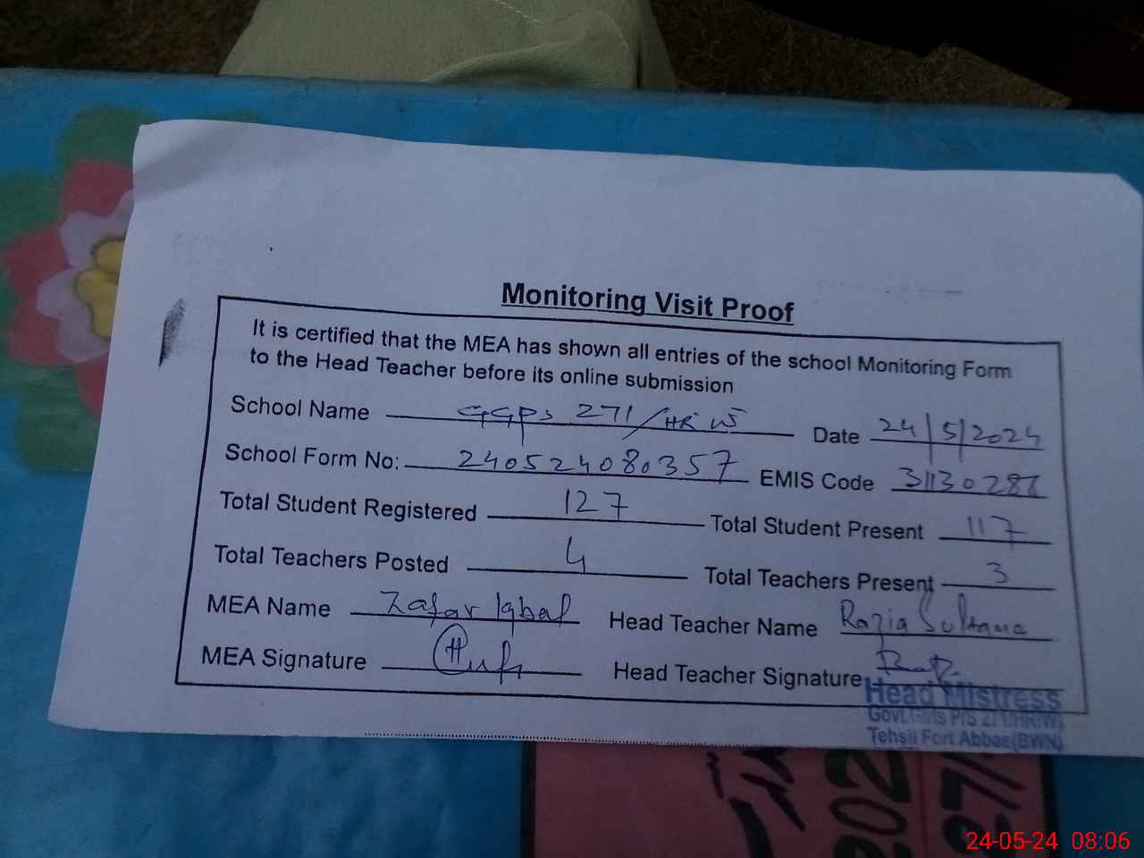 | EMIS Code: 31130286 | Name of School: GGPS CHAK NO 271 HR W | |||