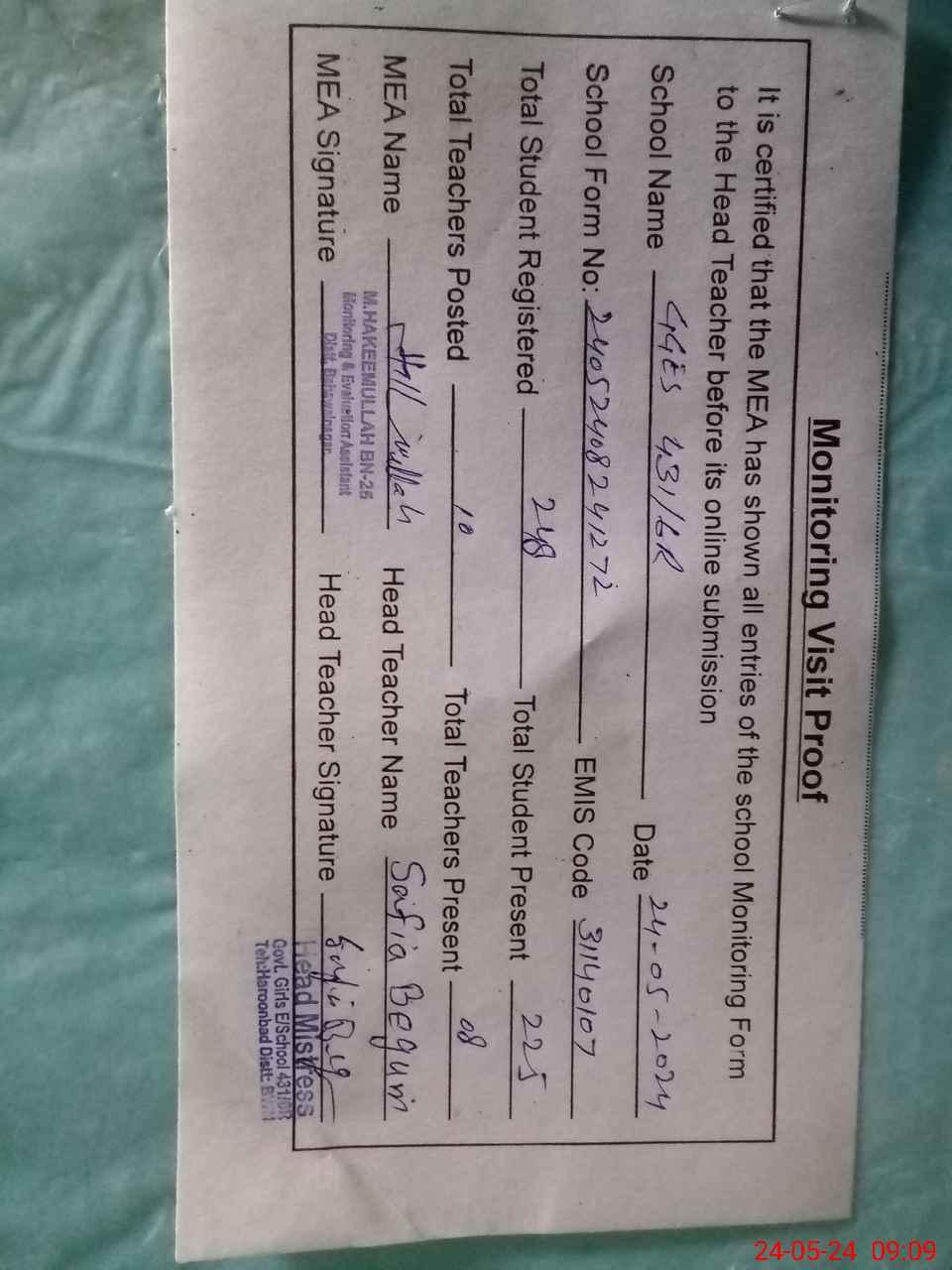 | EMIS Code: 31140107 | Name of School: GGES CHAK 431/6-R | |||