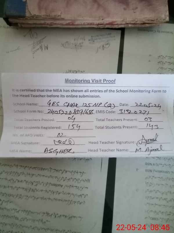 | EMIS Code: 31320271 | Name of School: GES CHAK NO.125/NP QADEEM | |||
