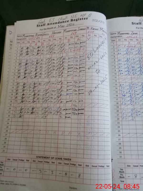 | CNIC | Full Name | Designation | R/C | Absence During Last Calender Month |