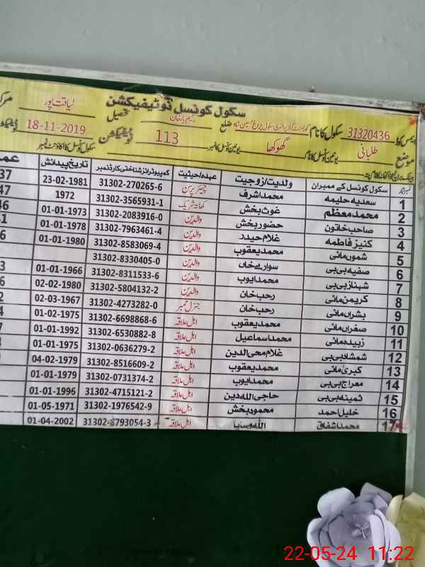 | EMIS Code: 31320436 | Name of School: GGPS CHARAGH HUSSAIN SHAH | |||