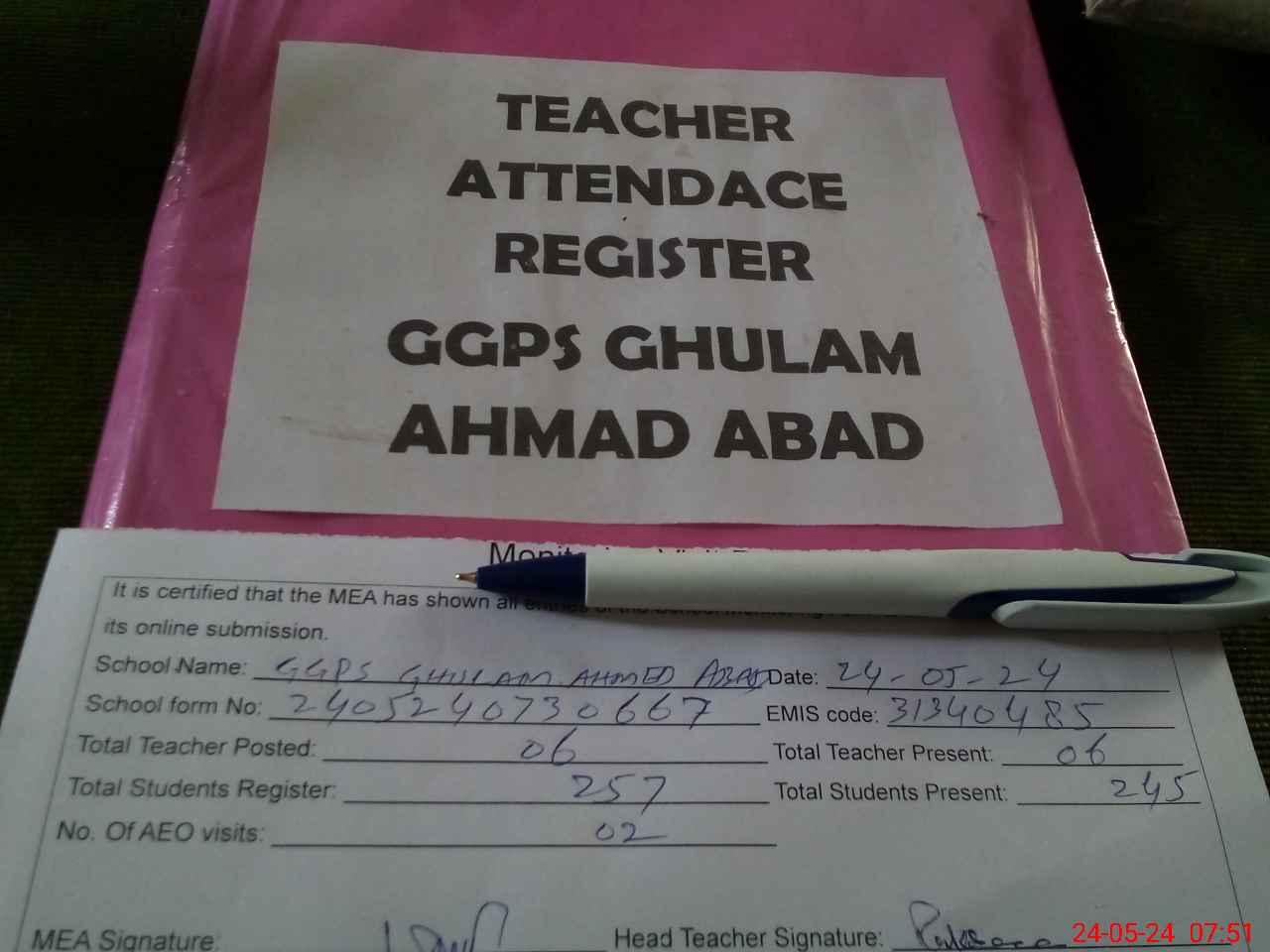 | EMIS Code: 31340485 | Name of School: GGPS GHULAM AHMAD ABAD | |||