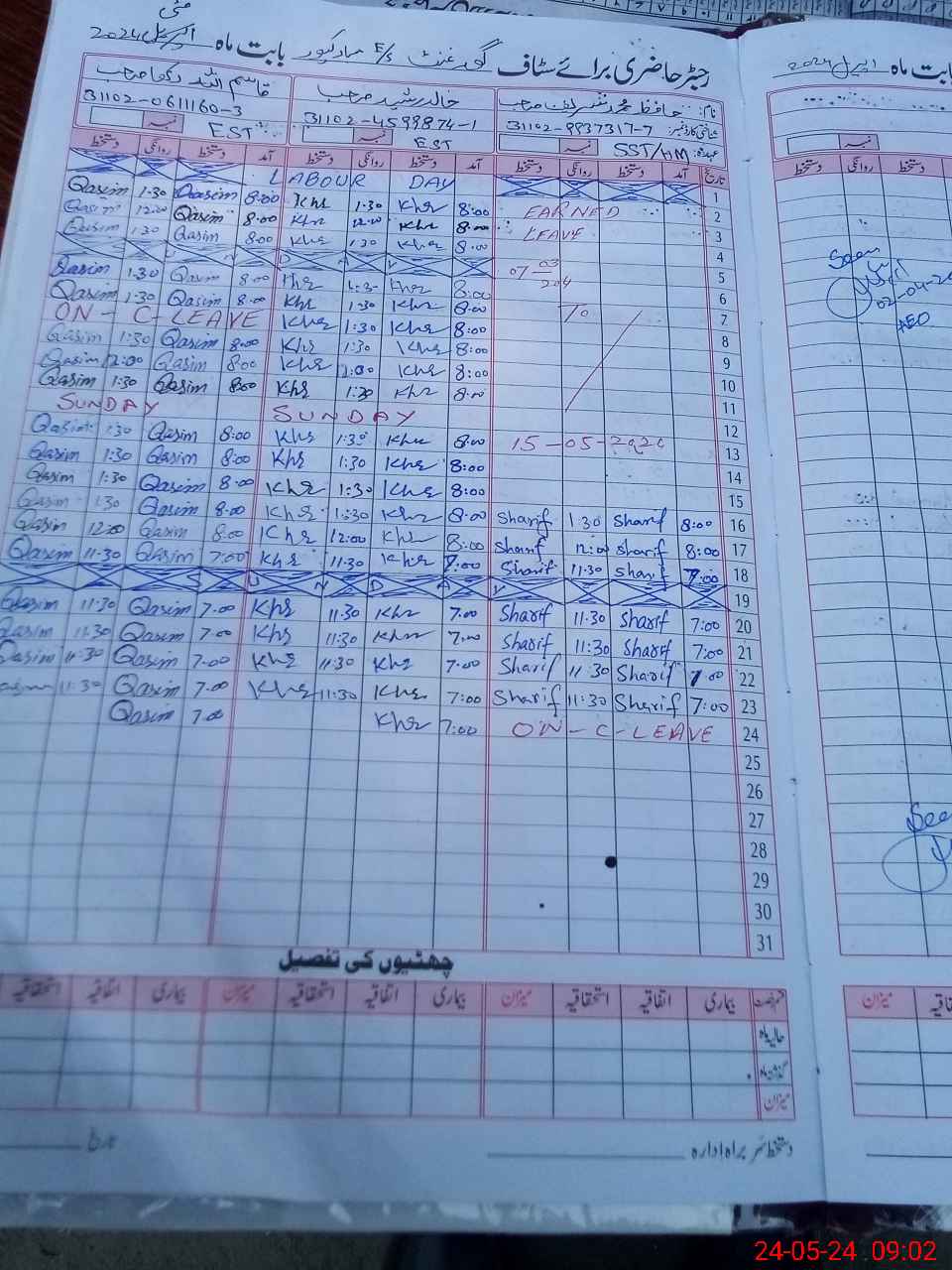 | CNIC | Full Name | Designation | R/C | Absence During Last Calender Month |