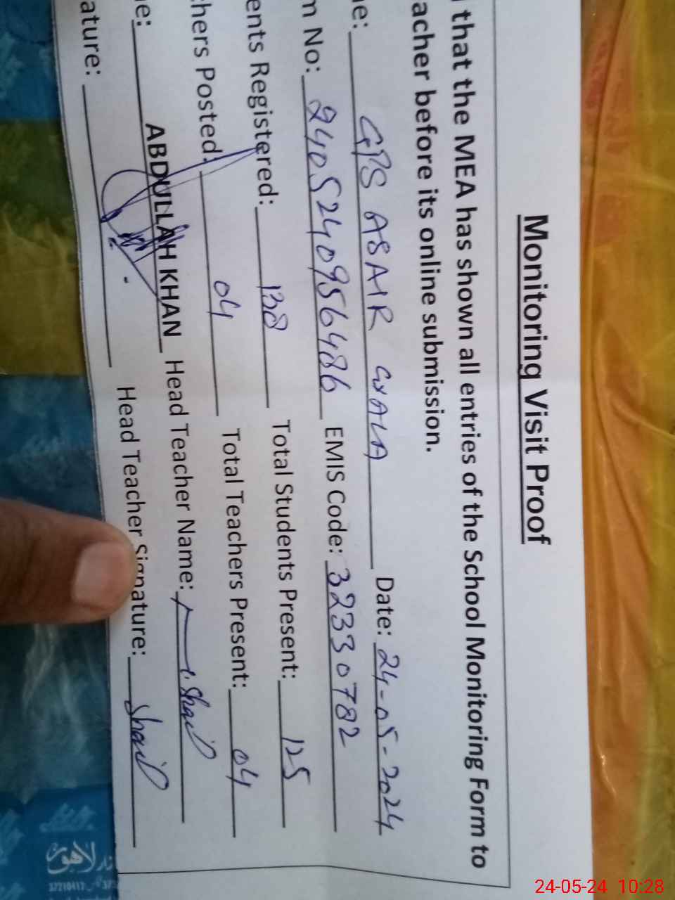 | EMIS Code: 32330782 | Name of School: GPS ASAIR WALA | |||