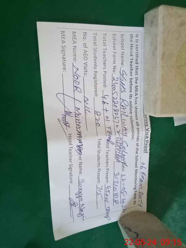 | Name: Mr**** As**** Sh**** Designation: (School Headmaster's/Headmistress's) Incharg Phone/Cell Number: 03**** |